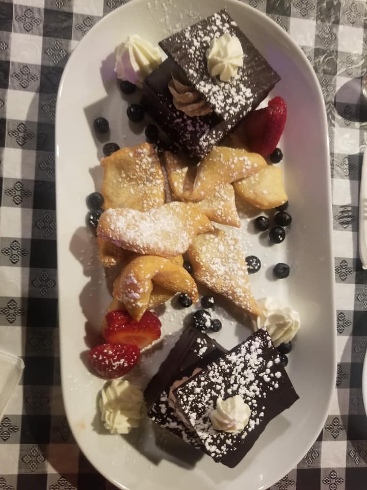 To finish the night, we couldn’t say no to the Desert Sampler ($14). It featured two square individual chocolate cakes, about 8 or so zeppoles, a handful of dollops of cream, and fruit (strawberry slices and blueberries). The chocolate cake was fine, but nothing special. The zeppoles, however, were fantastic and a hit with both of us as the light texture and sweetness complimented each other perfectly. The combination of fresh fruit and the cream made a great end to an even greater evening.